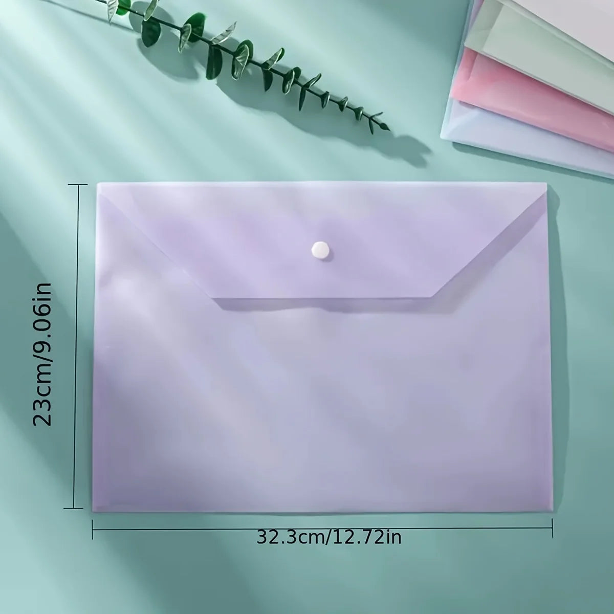 15pcs A4 Transparent Polypropylene Folder, Morandi Plastic Snap File Bag, Macron Color Data Bag, School Office Folder Bag