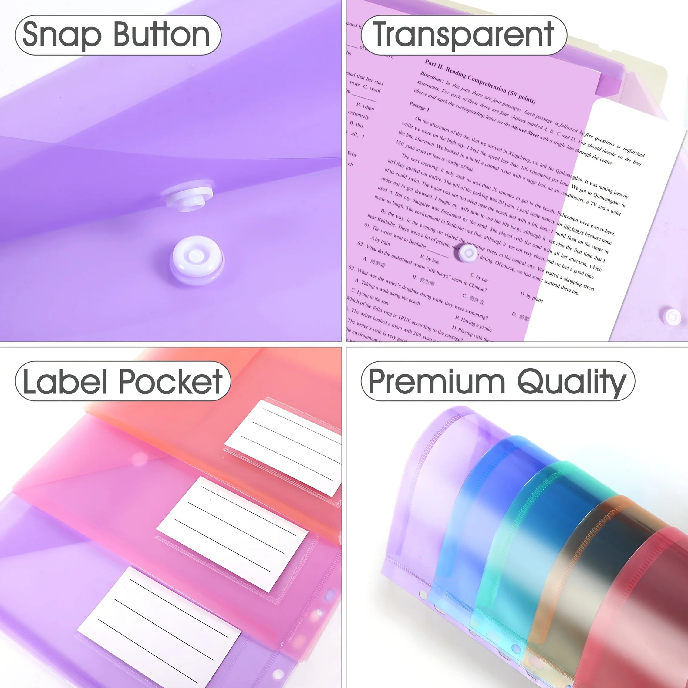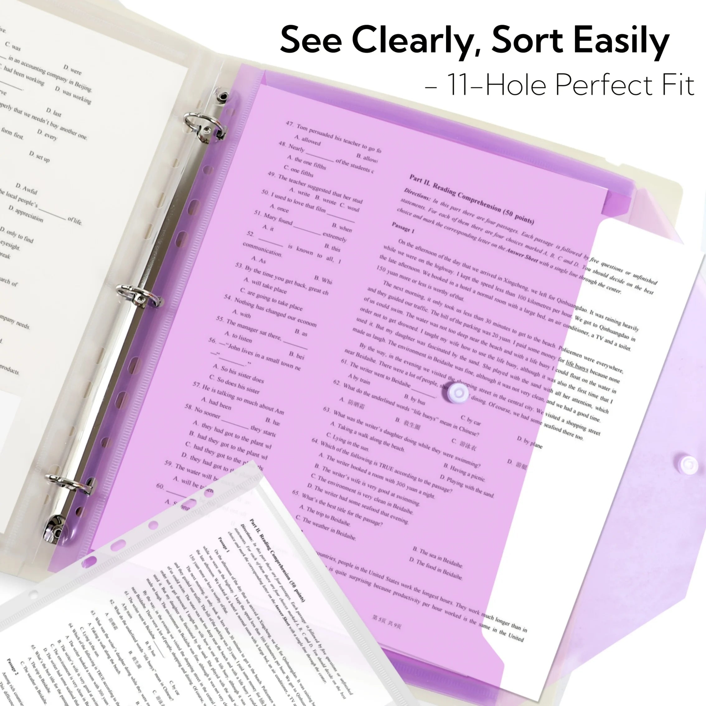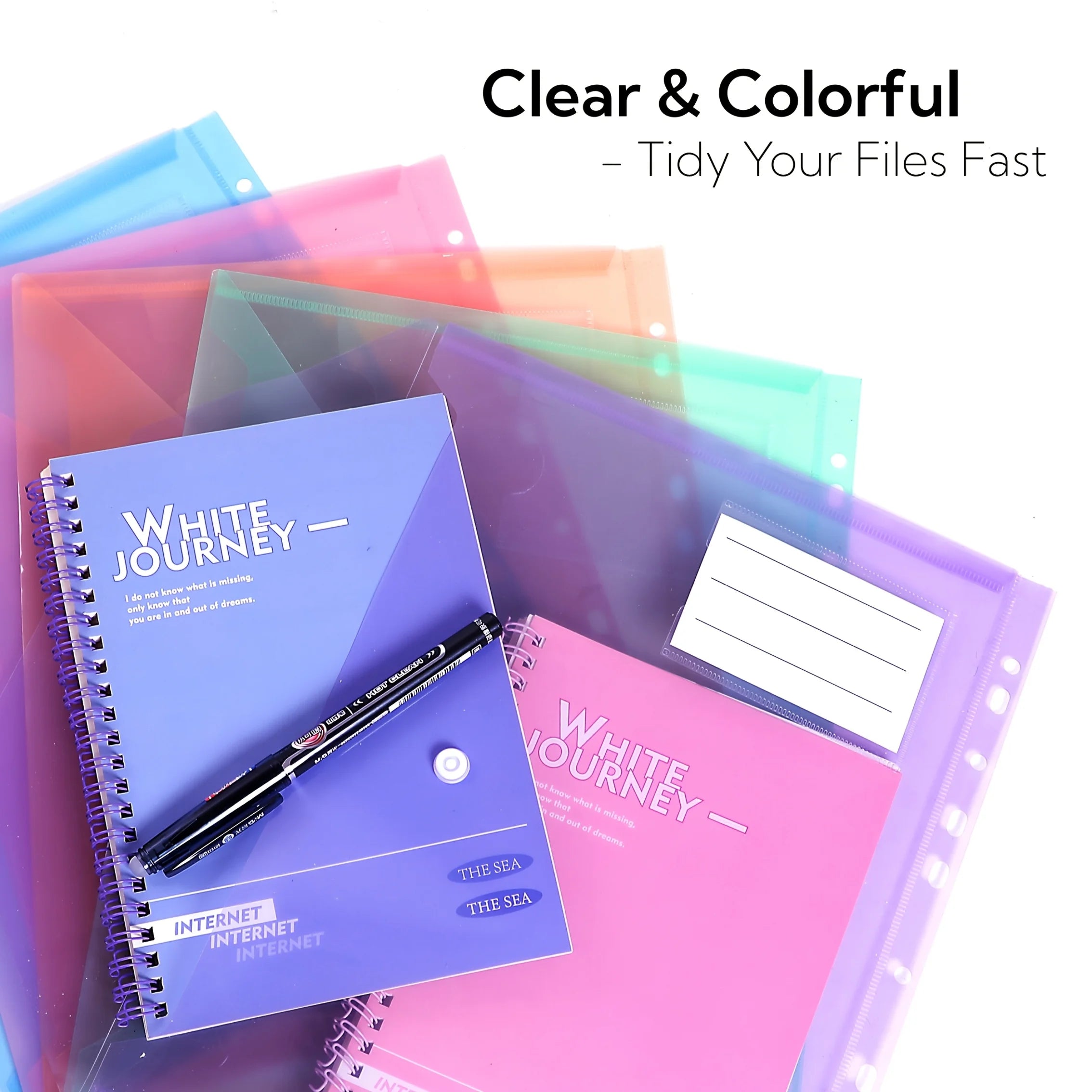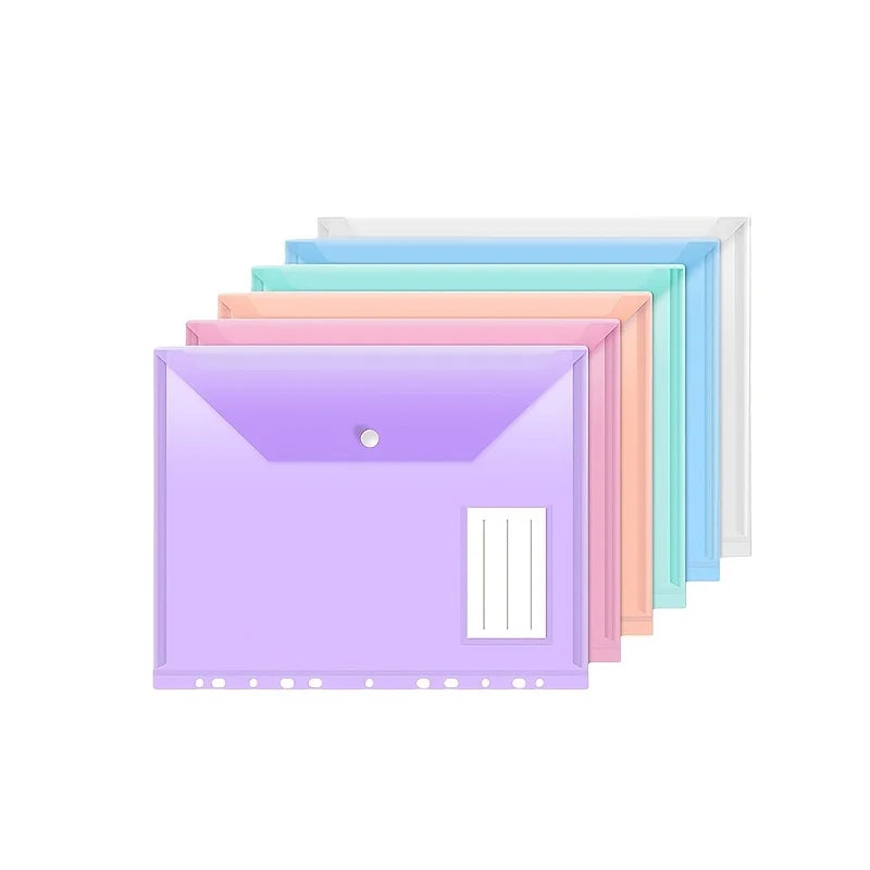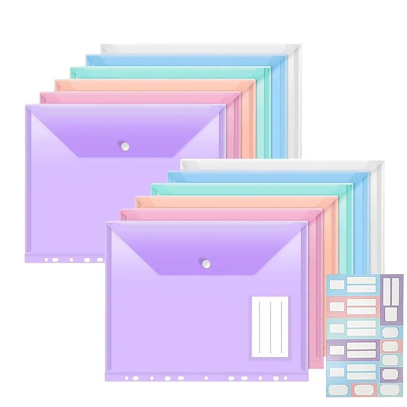 6/12pcs 11-Hole A4 Binder Pockets | Transparent Colorful PP File Bags & Label Pocket - Document Organizer for School Office Home