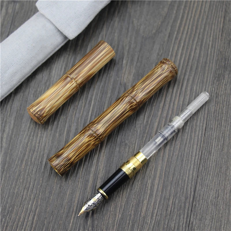 HERO Wood Fountain Pen Handmade Natural Bamboo, Fine 0.5mm Beautiful Golden Stripes Advanced Gift Office Business Collection