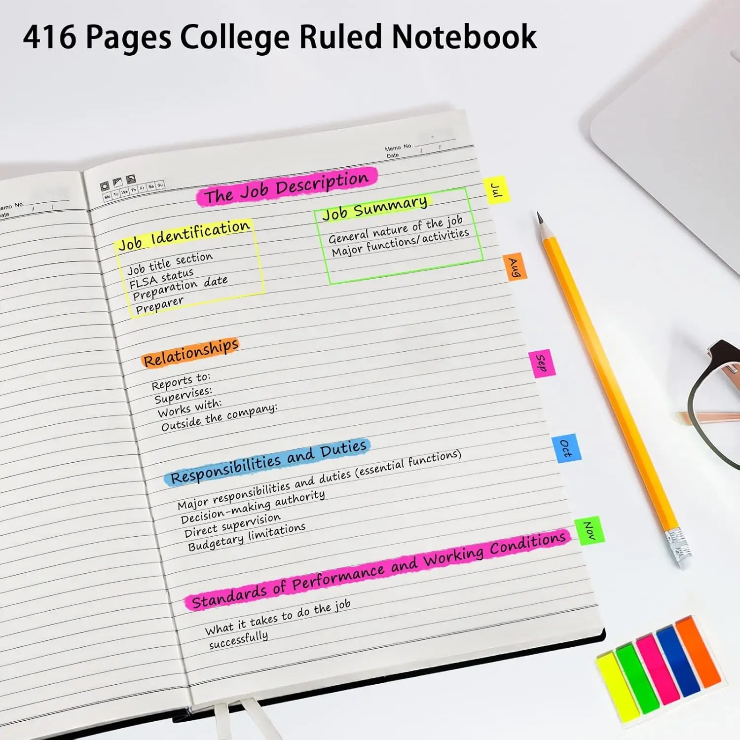 Leather Journal Notebook, 8.5x11 A4 Size, 400 Pages College Ruled with Sticky Tabs and Inner Pocket for Work School Writing